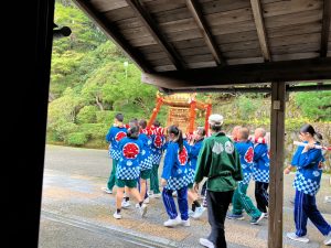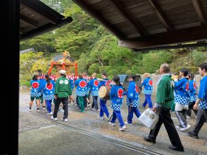 持明院にも中学生の「ワッショイ!ワッショイ!」という元気良い掛け声とともお神輿がやってきました😊