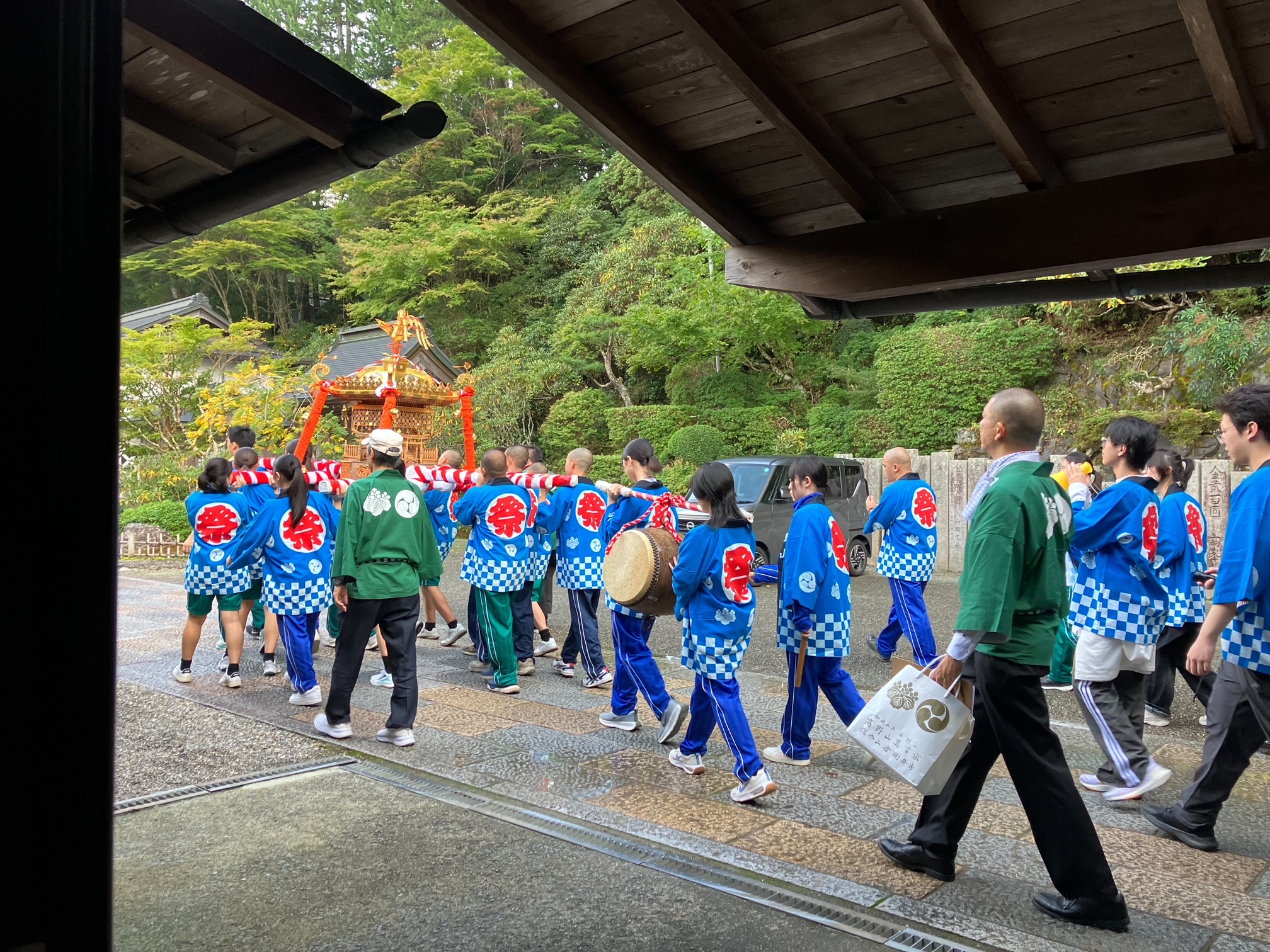 高野山の地主明神である高野明神(たかのみょうじん)の大祭で、明神社前にて法要の後、中学生のお神輿が山内を練り歩きました。