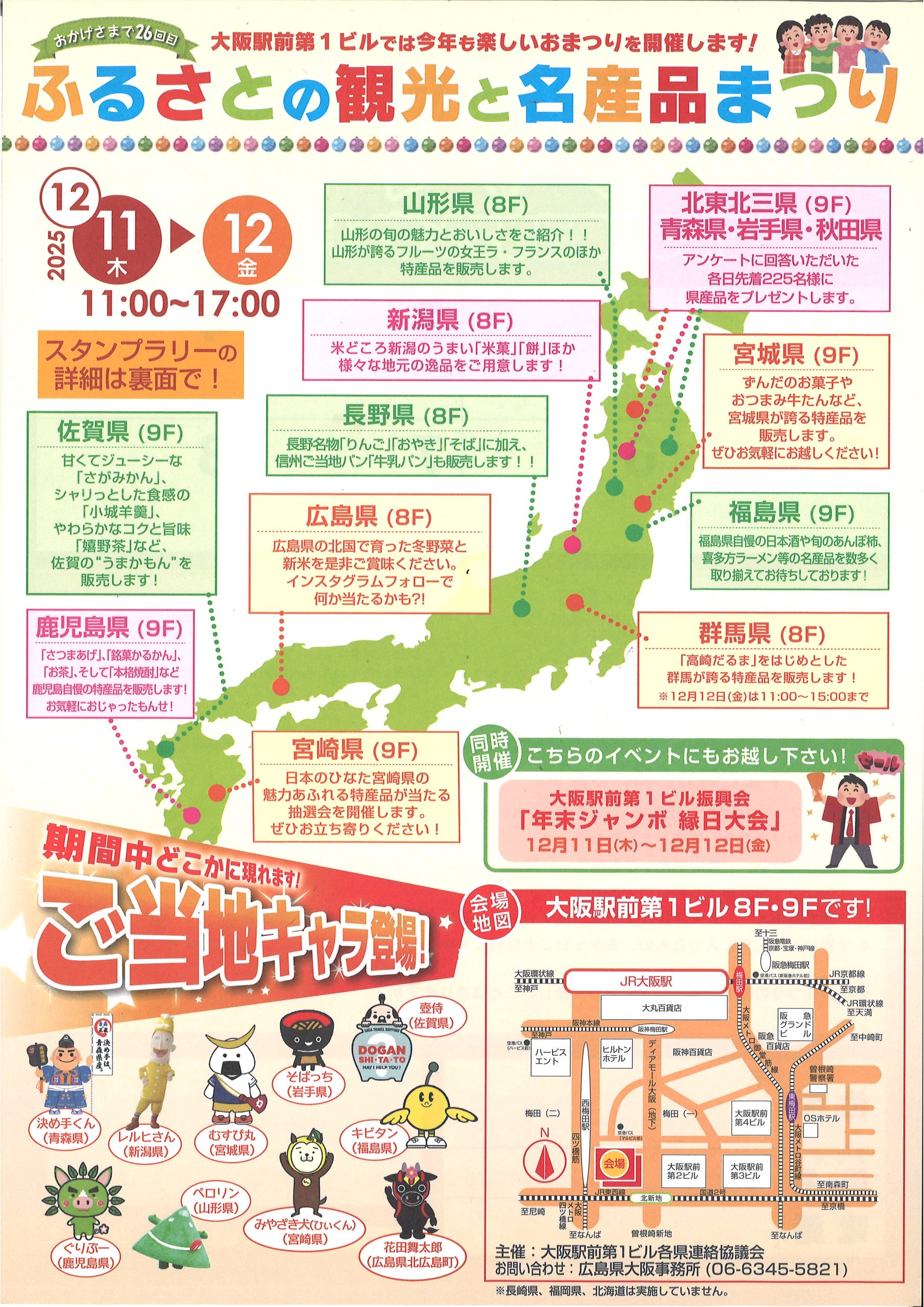 はすの会本社が入っている大阪駅前第1ビルが毎年12月に行っている、「ふるさとの観光と名産品まつり」通称〝1ビルまつり〟が今年も開催されます!