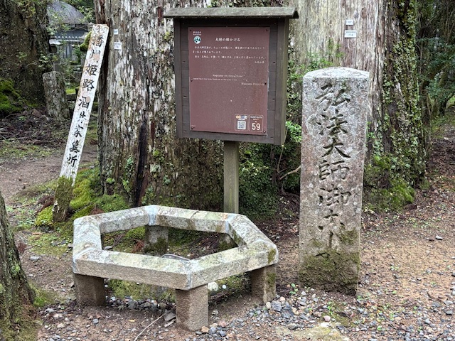 奥之院 一の橋から御廟へ向かう参道を歩いて6分ほど、右手に「大師の腰かけ石」があります。