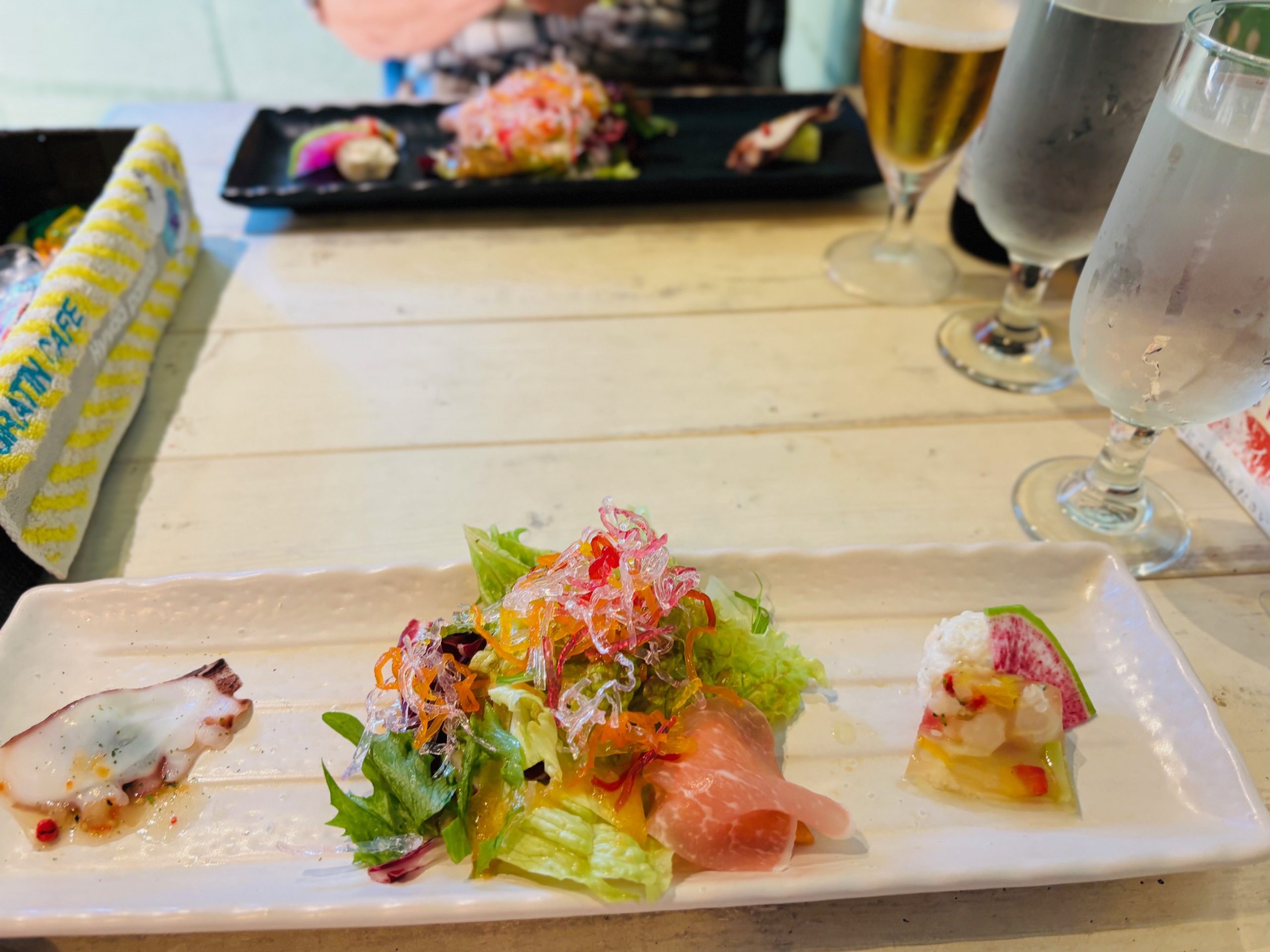 今回は数あるメニューの中から、海の幸 海鮮グラタンをチョイス、前菜セットとパンもオーダーしました。