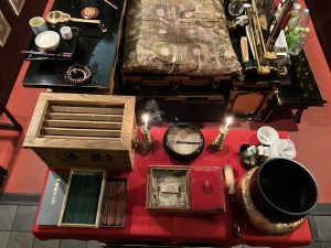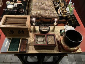 このたび、仏舎利宝塔 地下礼拝室正面の焼香台の敷物を新しくしました。