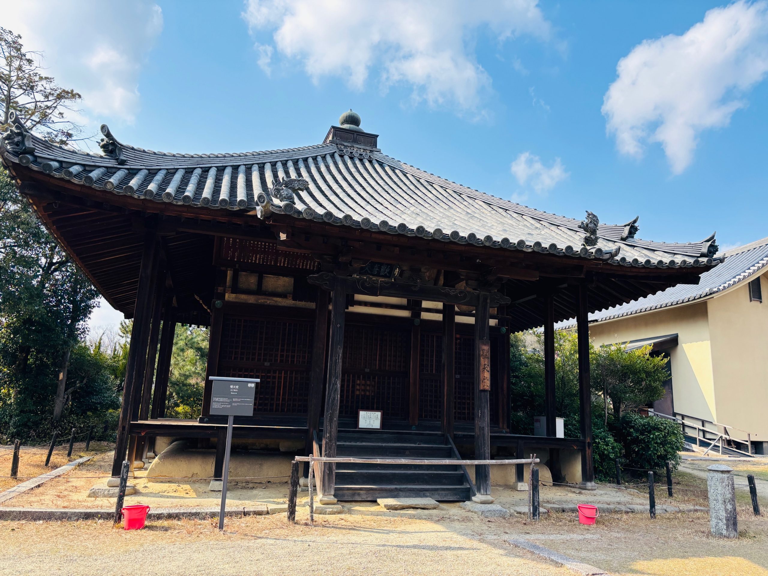 606年に聖徳太子が法華経を講説されたという岡本宮を寺に改めたものと伝えられており、太子が建立した七ケ寺(法隆寺・四天王寺・中宮寺など)の一つです。