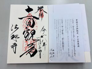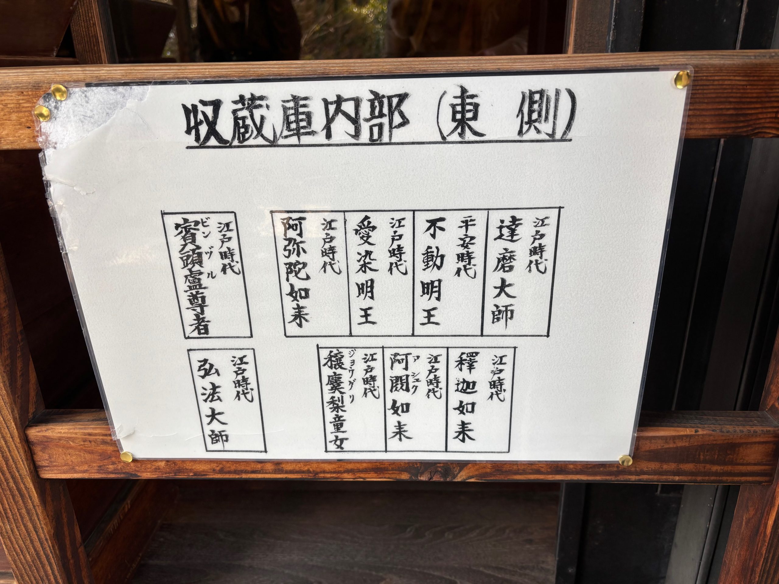 お寺の奥の収蔵庫の扉も開いていて、ご本尊の十一面観音菩薩像をはじめいくつかの仏像が安置されていました。その中にお大師さまの像もありました😊
