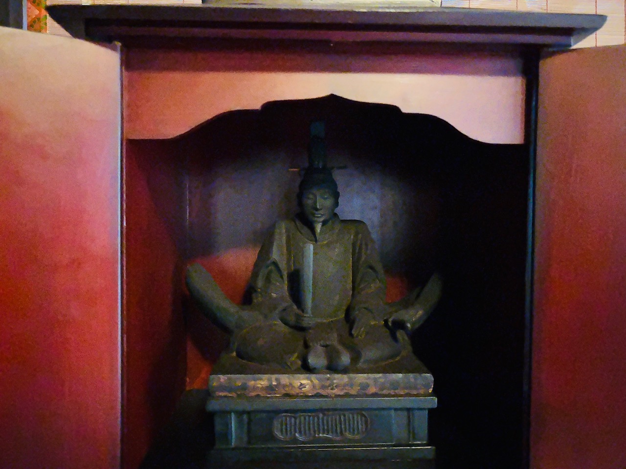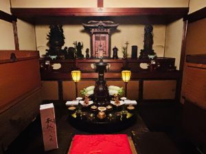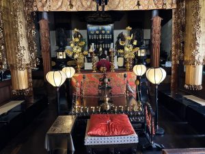 聖天堂内陣 中央にご本尊の秘仏・薬師如来立像が安置されています。