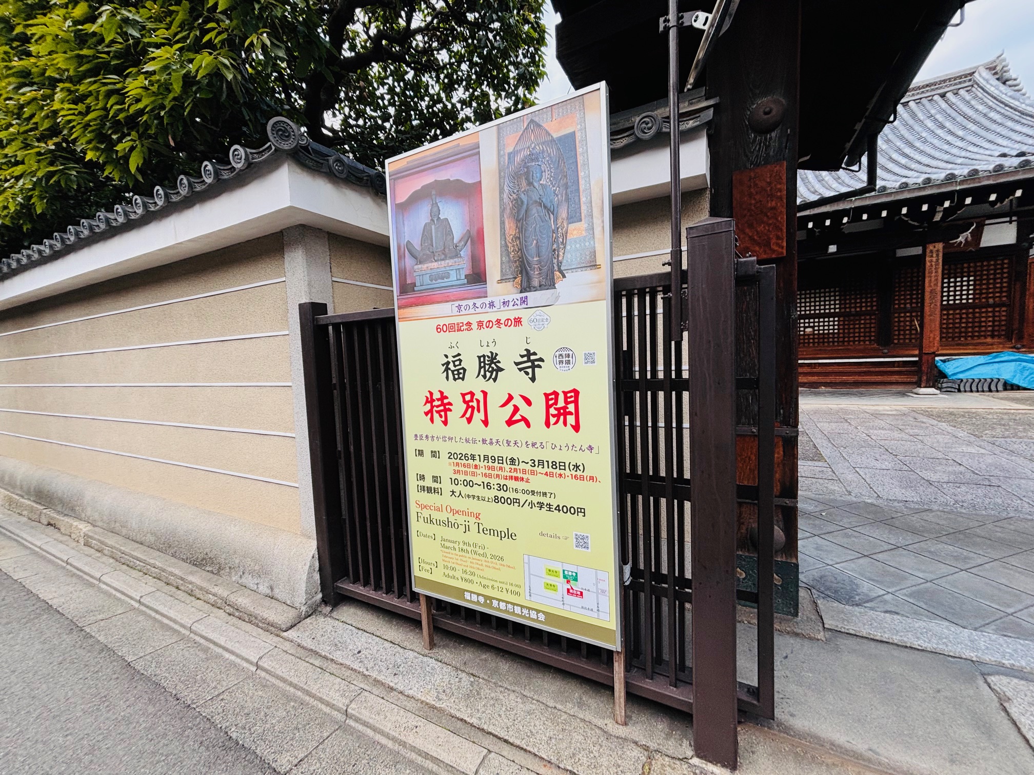 現在 京都の冬のキャンペーン「京の冬の旅」に合わせた特別公開がおこなわれている、京都市上京区の真言宗善通寺派 福勝寺(ふくしょうじ)へ行ってきました。