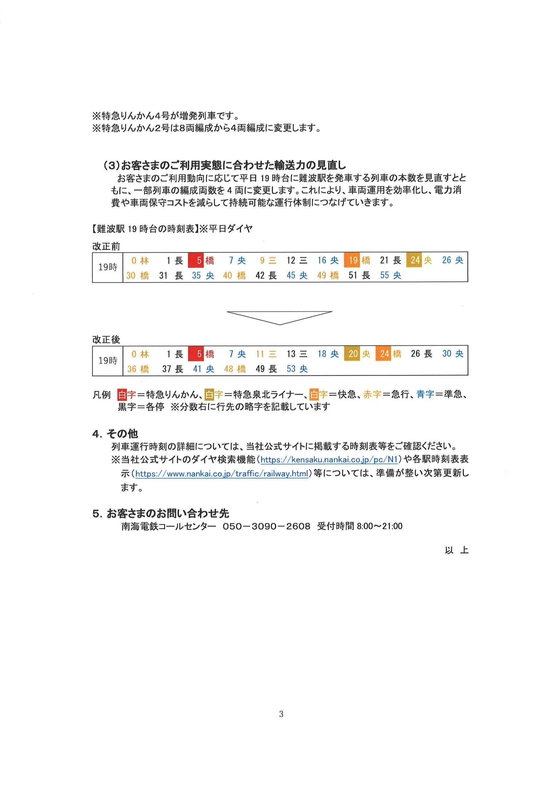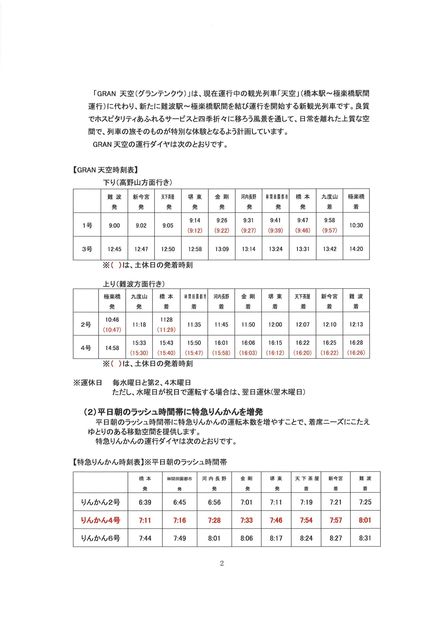 詳細につきましては、今後発表される南海電鉄ホームページ内新ダイヤをご覧ください。