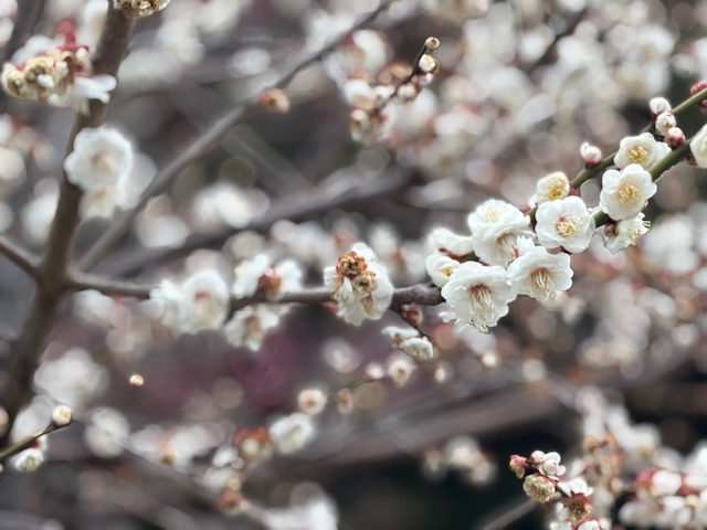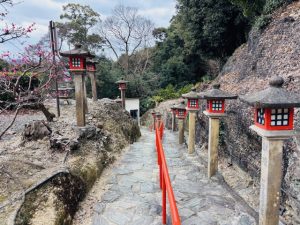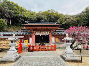 立派な鳥居をくぐり、きれいに咲いている梅を見ながら進むと・・・(訪問日:2/23)