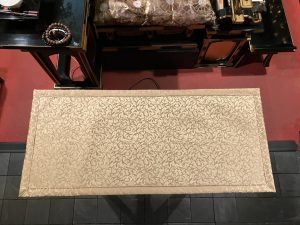 はすの会会報最新号 No.71 でもご紹介したとおり、この度 仏舎利宝塔内礼拝室の焼香台の敷物と地上墓納骨法要の際に使用する掛物を新調しました。