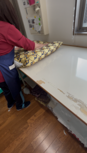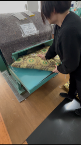 職人の皆さんが座布団やリン布団に綿をひとつひとつ丁寧に詰めていく作業や、美しい布地を縫い合わせていく様子など、ものづくりの現場を間近で拝見しました。