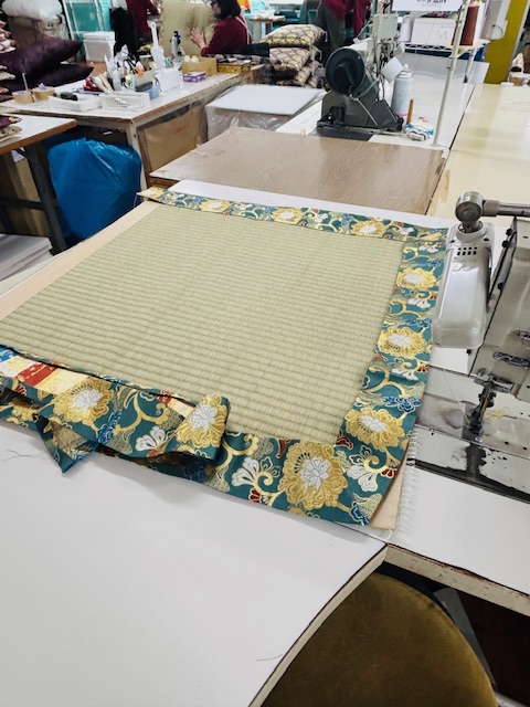 職人の皆さんが座布団やリン布団に綿をひとつひとつ丁寧に詰めていく作業や、美しい布地を縫い合わせていく様子など、ものづくりの現場を間近で拝見しました。