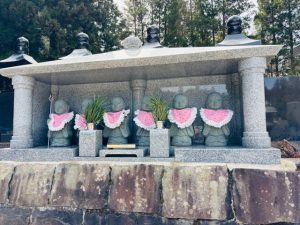 やさしいピンク色の前掛けに包まれ、高野山にもひと足早く春の訪れを感じますね🌸六地蔵さまたちも、どこか嬉しそうに微笑んでおられるようです。